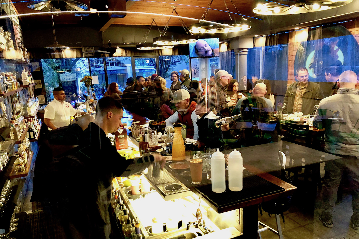 Formerly El Farolito and adjacent to the Diaz family’s newest restaurant, Tu Mole Madre, El Gallo Negro offers an eclectic array of mezcal and tequila cocktails, as well as local wines and a rotating handle of local beers. Bartenders mix up more traditional libations, like a house Margarita made with a choice of blue agave tequila or mezcal, with fresh lime juice and simple syrup; and the traditional (and delicious) Paloma made with blue agave tequila, grapefruit juice, lemon, salt, and simple syrup. If you’re feeling feisty but not up for mezcal or tequila, they offer a shot of Jack Daniels with a Coors Light for $11. Most cocktails are $9 to $12, and shots start at $11.