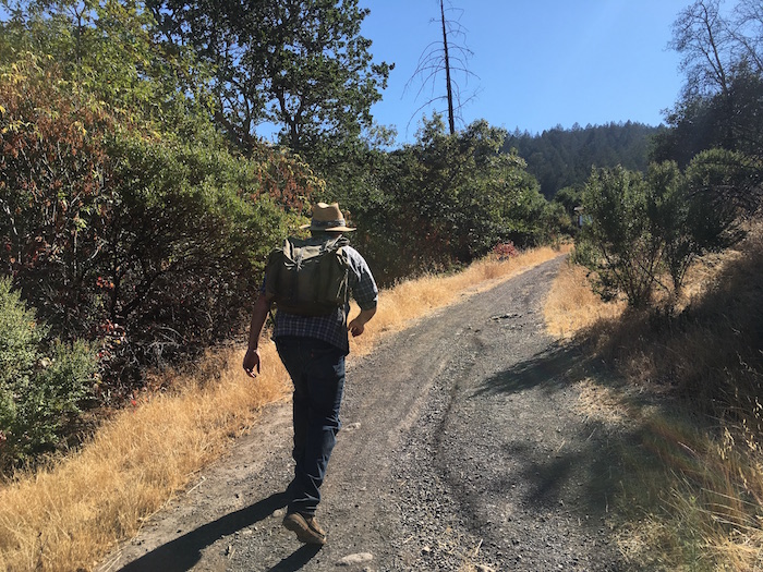 I also recalled the cryptic suggestion of a winemaker (after some wine) that a person has no problem hiking from Napa Valley over the Mayacamas to Sonoma Valley, if one knows the right gate codes. So I came up with a plan (not endorsed by any public or private entity). On Day One, I’d step out my front door, walk along a completed section of the SMART multi-use pathway to downtown Santa Rosa, cross town with a preview of the proposed Southeast Greenway that, it is hoped, will connect future hikers to Trione-Annadel State Park, and on to Kenwood. Days two, three, and four, maybe five, would see me in Sugarloaf State Park, where I’d find my way to Napa Valley, and back again, via parks, roads, and…various routes, where one winemaker sympathetic to the scheme offered to show me the way; another would look the other way.