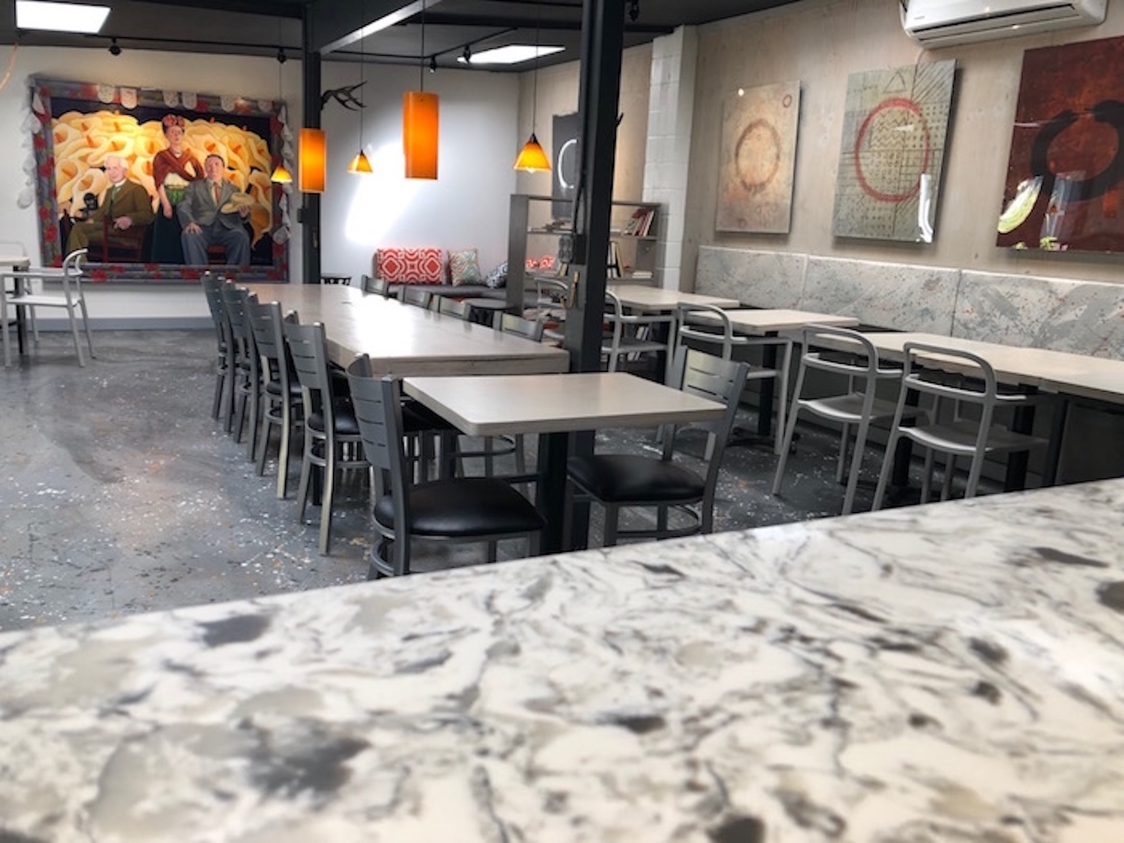 “We saw a need for a place where musicians could have an audience, artists could show their work, and people could come together to eat and drink,” explains Mario. “Plus,” he cracks a smile, “I needed a place to display this giant painting of mine.”