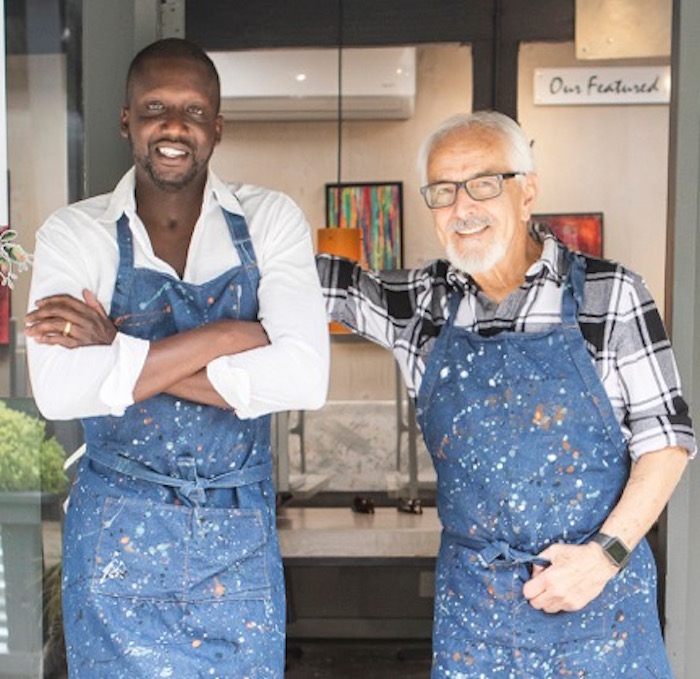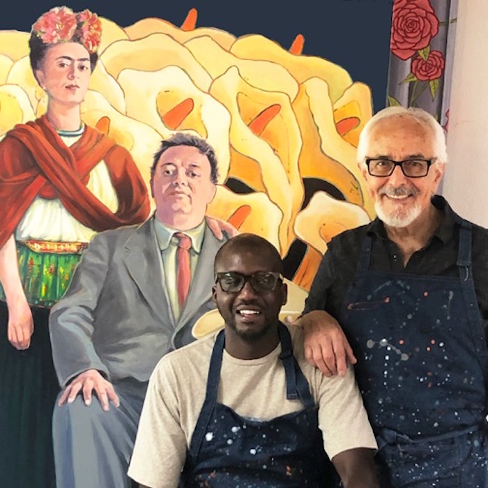 Nearly a century later, a large painting of Burbank, Kahlo, and Rivera hangs on the back wall of Café Frida, the art gallery/café/music venue started by local art legend Mario Uribe and his son-in-law Mamadou Diouf. The two laugh easy and often, and chatting with them is part history lesson, part design tutorial, part trip down memory lane. They evoke Montmartre at the turn of the 20th century and Max’s Kansas Bar in New York City during the ‘60s and ‘70s as inspiration for their vision.
