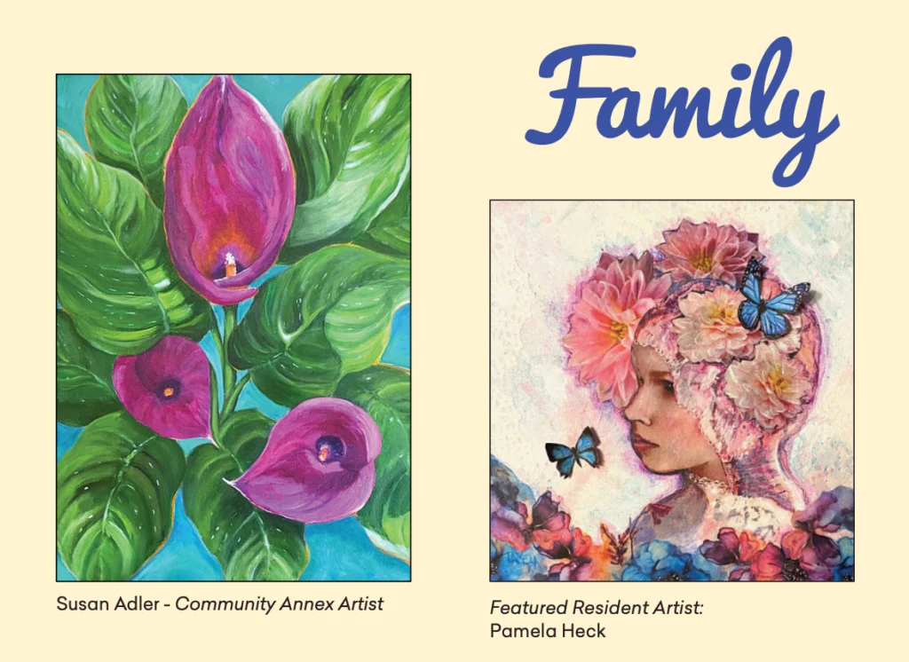 The exhibition features work by Susan Adler, Laura Paine Carr, Trudie Folsom, Jane Gardner, Pamela Heck, Sterling Hoffman, Terry Holleman, Will McCoy, Jason Taylor Morgan, and Jennifer Weiss. Featured Artist is Pamela Heck, with Guest Artist Sterling Hoffman and Community Annex Artist, Susan Adler.
