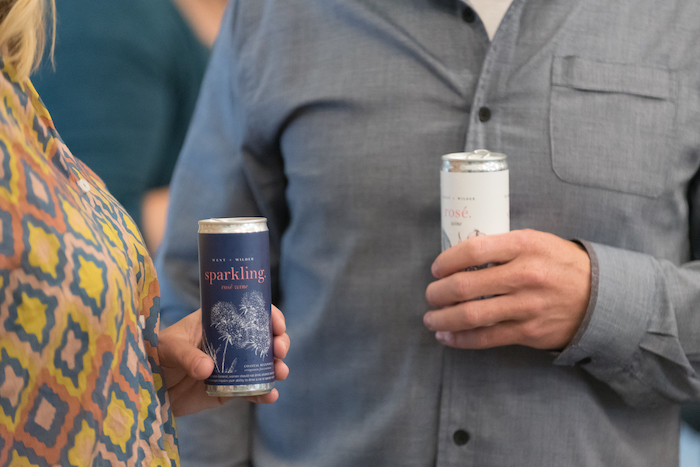 Rochford’s wife, a schoolteacher, is West + Wilder’s perfect customer. She would love a glass of wine on a Tuesday night but doesn’t want to be “that person” who opens an entire bottle and just might polish the thing off. One can of West + Wilder is 8.4 ounces, a third of a bottle, or what Allan calls “a good home pour,” the kind of full glass you’d be glad to treat yourself to after a hard day in the classroom, knowing you have to get up early and go back tomorrow. Three cans equal a 750 mL bottle of wine.