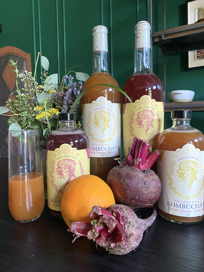“I bought my first kombucha at a gas station in Mendocino County when I was a teenager and thought it was awful,” Chef Lauren Kershner tells me. She’s preparing artful trays of vegetables and fruits for her catering business Goodness Gracious Catering in Glen Ellen.
