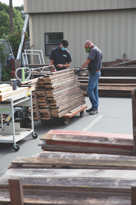 Why? Because there’s a crucial difference, I soon learn, between demolition (which is quicker and cheaper) and deconstruction (which involves intentionally and “surgically” taking a building apart the opposite of the way it was put together). “When you deconstruct instead of demolish,” Bugge explains, “you can keep 85% of materials by weight out of the landfill.” Bugge, who started logging as a 10 year-old in Oregon before moving into demolition work, recounts the ugliness of smashing houses—and wasting not only the perfectly good materials, but all the natural, human, and fossil fuel energy that went into harvesting and processing them.