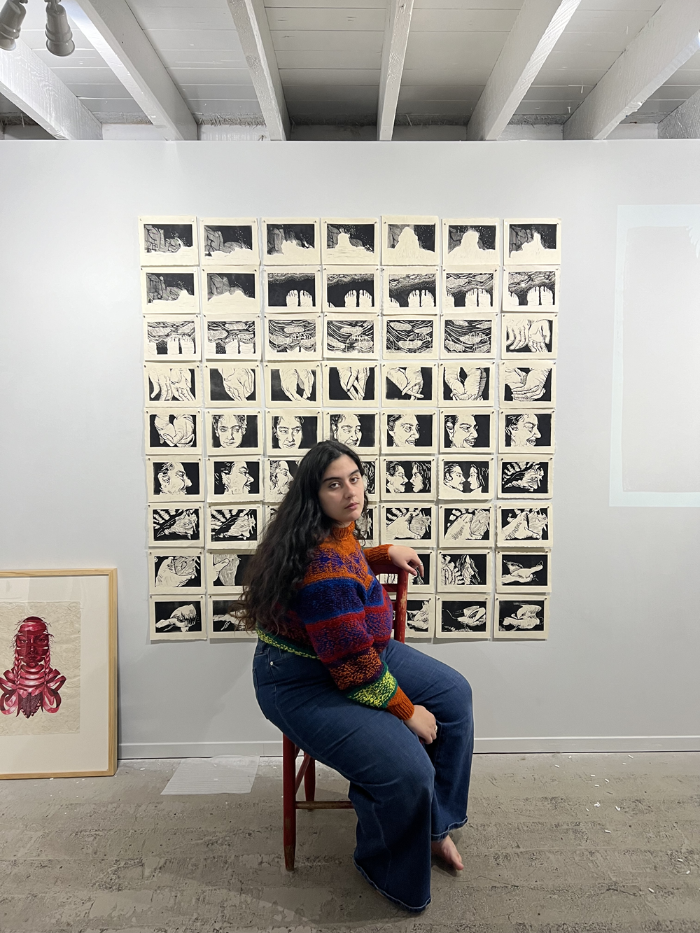 In the vibrant art scene of the San Francisco Bay Area, Chilean-American artist Amaya Lounibos Hartard stands out as an emerging voice; her work is infused with themes of home, childhood, and the complexities of her identity as a queer, biracial woman. Formerly a member of Petaluma’s Magic Shop Studio Collective, she is pursuing her BFA in printmaking and painting at CSU Long Beach in the fall. Through her artwork, the 21-year-old painter and printmaker invites viewers into her personal world with the goal of creating space for underrepresented voices in the art world.