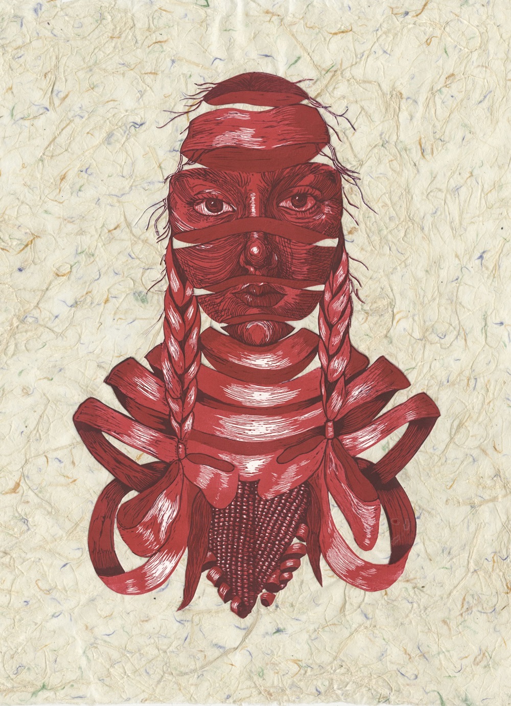 AL: Right now, I am making new prints! I am working larger on 18″x24” linoleum relief prints, exploring textures and, of course, self portraiture. I’m interested in the idea of transformation, and in these pieces, we will see the figures’ skin transform into different materials like lace, crochet, plants and maybe even water.